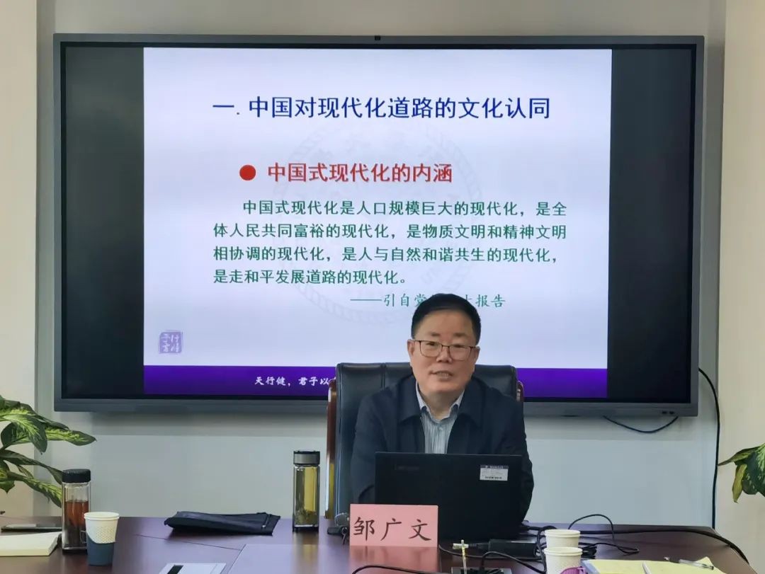 1月3日上午,清华大学博士生导师邹广文教授应邀在学院334会议室做了题为《中国式现代化的文化解读》的学术讲座。讲座由学院副院长路晓锋主持,相关专业师生聆听了本次讲座。