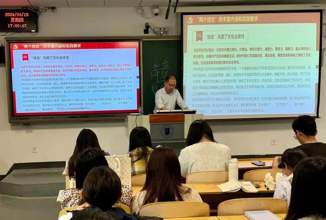 4月18日,革命精神研究中心党支部邵岩在公教楼D座110教室为新葡萄8883官网AMG学生第二党支部36名党员和入党积极分子讲授“深刻理解‘两个结合’,坚定文化自信”专题党课。