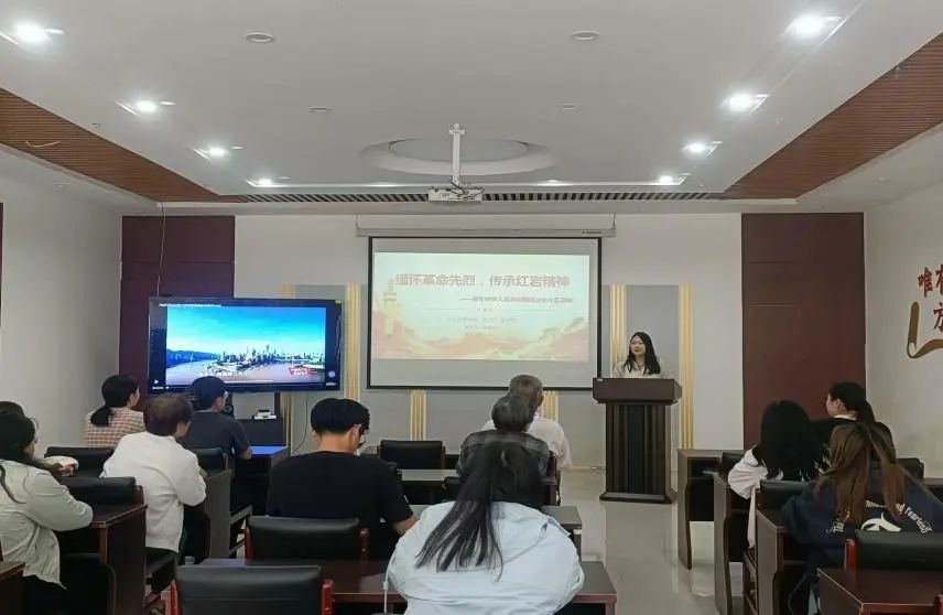 “红砖”宣讲团成员徐园艺从“一只红梅、一封自白书、一面五星红旗”出发,讲述在近代中国面临重大历史转折的全面抗战时期和解放战争时期,以毛泽东、周恩来同志为主要代表的中国共产党人,在国民党政权统治中心的重庆暨中共中央南方局所辖地区,在为争取民族独立和人民解放的革命斗争实践中培育、锤炼和凝结成的伟大革命精神——红岩精神,并从实际出发引导党员缅怀革命先烈,学习红岩精神,发扬红色传统,以红色基因补足精神之钙、筑牢理想之基、把准思想之舵方能锤炼意志品质,走好人生之路。