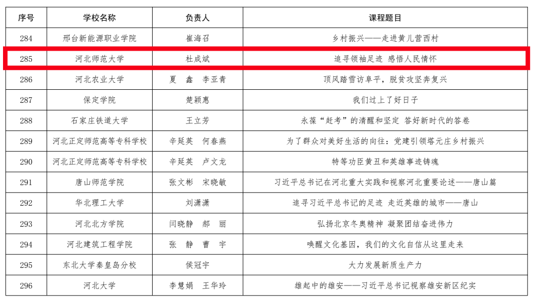 近日,河北省教育厅发出通知,公布“习近平新时代中国特色社会主义思想”精品视频课与优秀教学案例遴选结果、思政课实践教学精品课征集评选结果,新葡萄官网教师参加的10项成果入选。