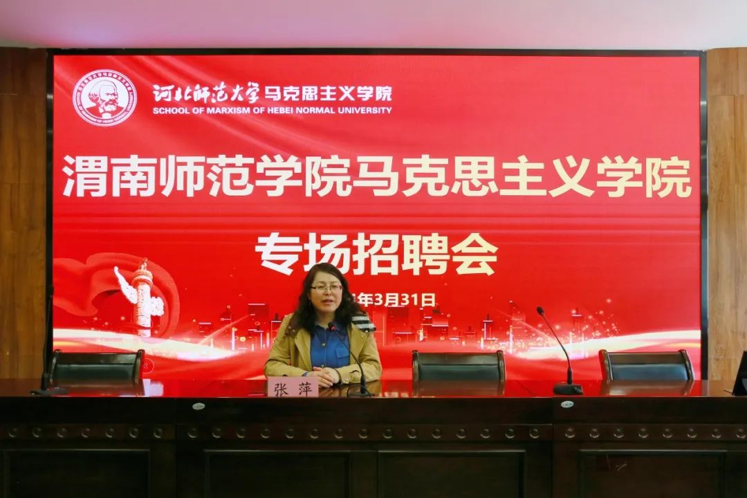 3月31日下午,渭南师范学院新葡萄8883官网AMG来院举办专场招聘会。渭南师范学院新葡萄8883官网AMG院长张萍、党委副书记肖飞,学院党委副书记、副院长李萌,研究生辅导员吴刚、王倩倩以及20余名博士研究生参加招聘会。